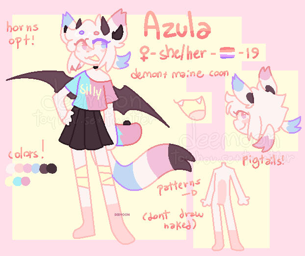 CUSTOMS - 35€-open-custom design! just send me what you'd like me to make and i'll try my best. i work best with a concept like "goat cat" than moodboards! (but those are ok too)-note that i make designs much better if i am working with pastel/bright colors!-they are usually just a fullbody w a transparent bg, but if you'd like a reference (simple) it'll be +15$ !!-i don't do shading on these